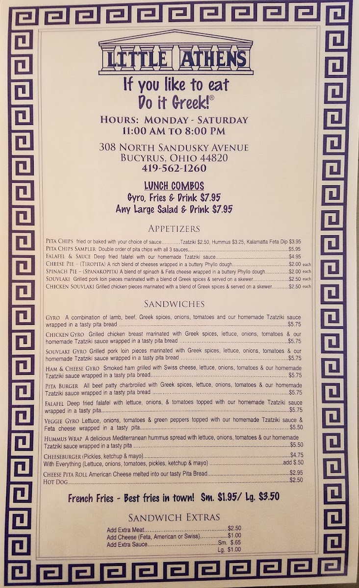 Little Athens Greek Restaurant - Bucyrus, OH Menu (2025 Update)